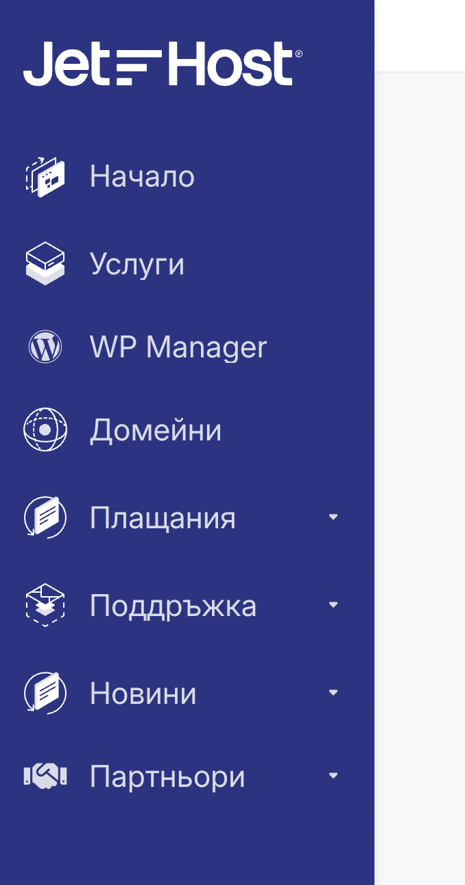 WordPress Manager ще откриеш веднага след като влезеш в своя профил в jethost.bg, от бутона Вход.