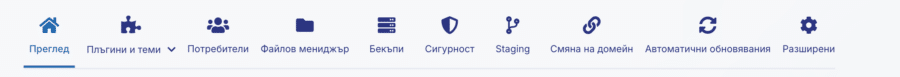 Щом кликнеш на бутона Управление, влизаш в менюто с настройки за конкретната WordPress инсталация.