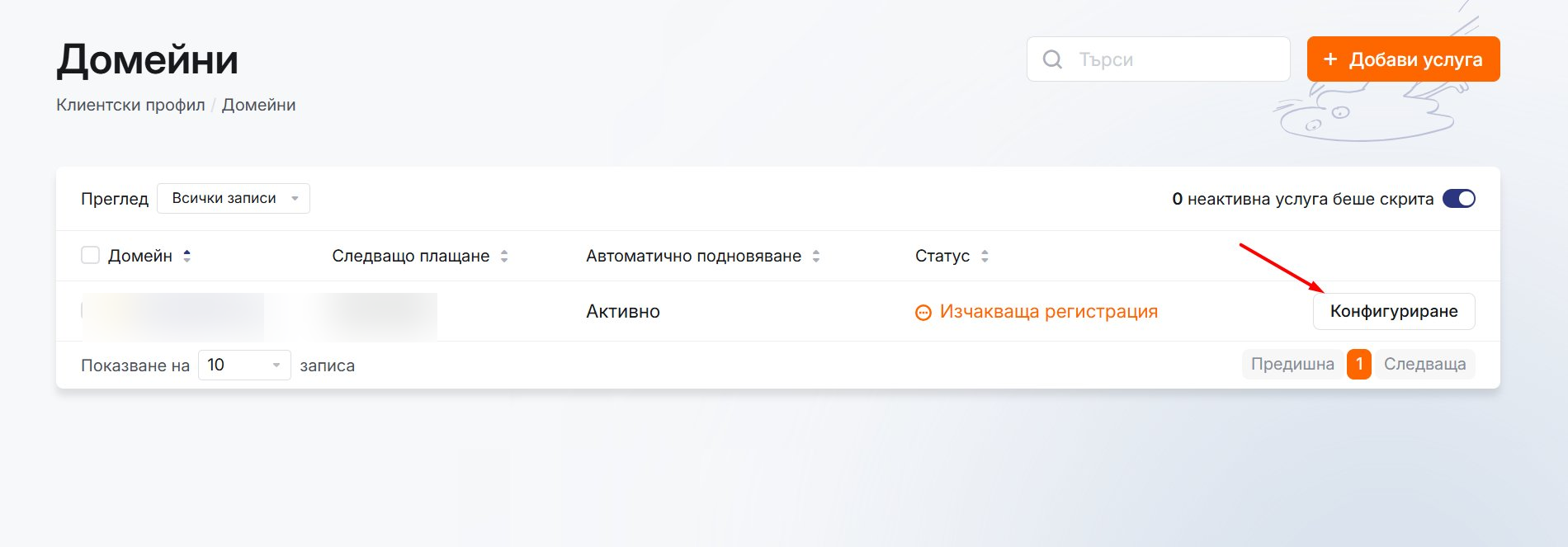 Статусът на домейна в клиентския ти профил ще се промени от „Изчакваща регистрация“ на „Активен“.