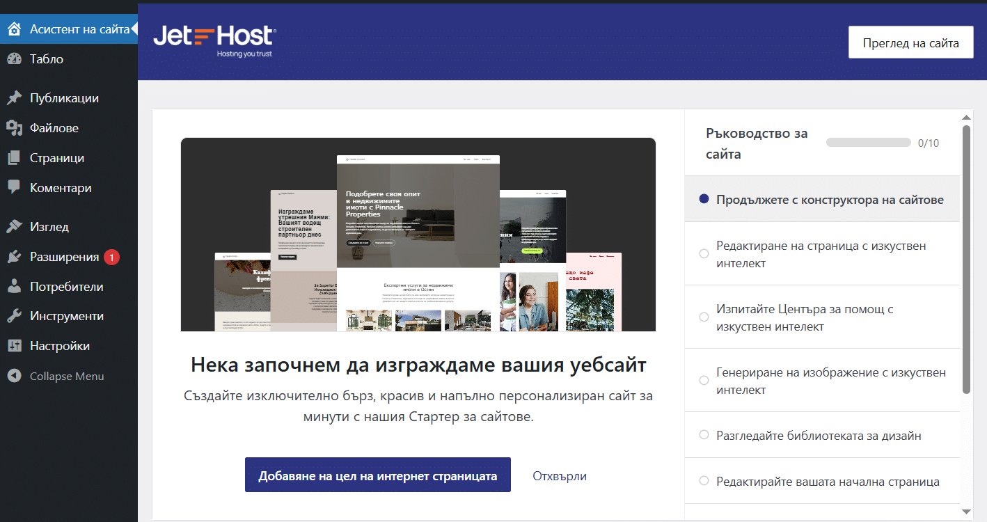 Готов ли си за новия си сайт? С AI Сайт Билдър от JetHost го получаваш бързо, лесно и без никакви технически главоболия. Всичко е автоматизирано — остава само да избереш стил, съдържание и да натиснеш „публикувай“. Ето как се случва: