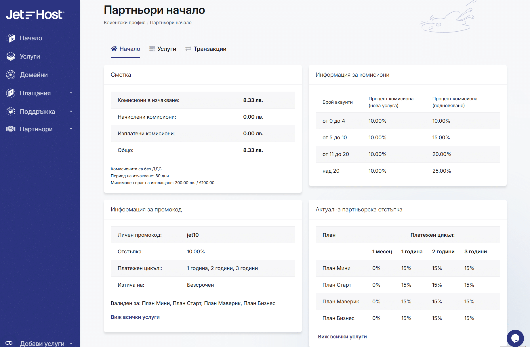 Как да работиш с партньорския интерфейс в клиентския профил на JetHost?